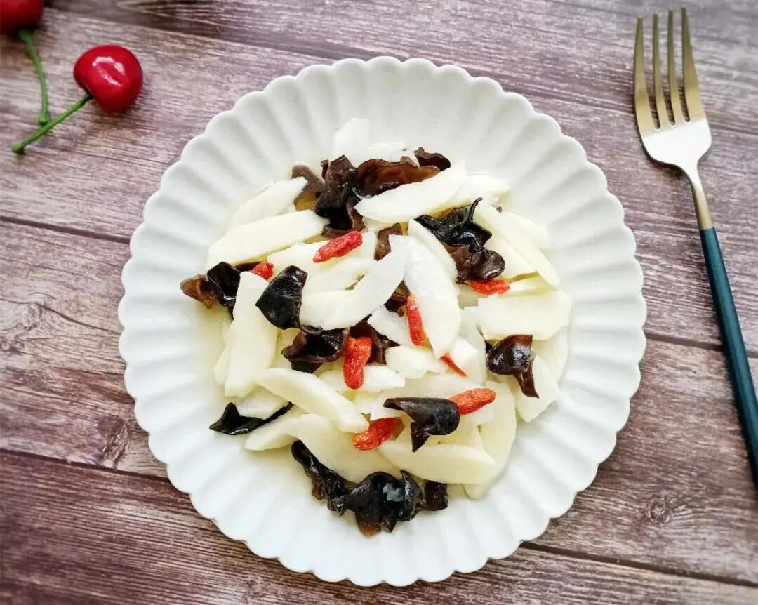 山药1根、木耳适量、蘑菇、枸杞适量